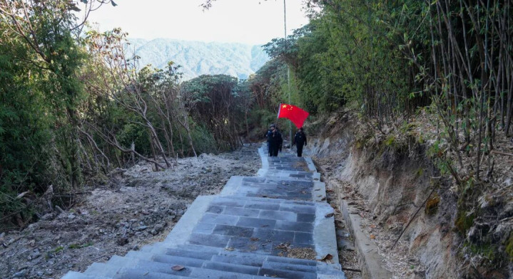 随着今年石阶路修缮完成,守护“共和国一号界碑”的巡边路越来越好走。(颜广摄)